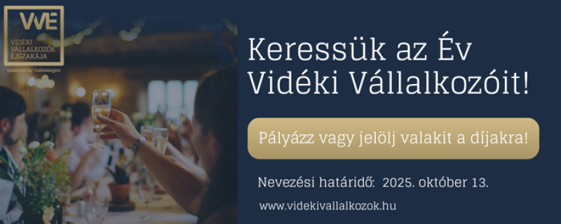 A kezdeményezés a Modern & Stílusos Vidék Üzleti Közösség (MSVK) szervezésében valósul meg, a pályázni október 13-áig lehet, a díjátadóra pedig 2025. november 11-én, Budapesten, az Eiffel Műhelyházban kerül sor a Vidéki Vállalkozók Éjszakája powered by Volkswagen gála keretében.